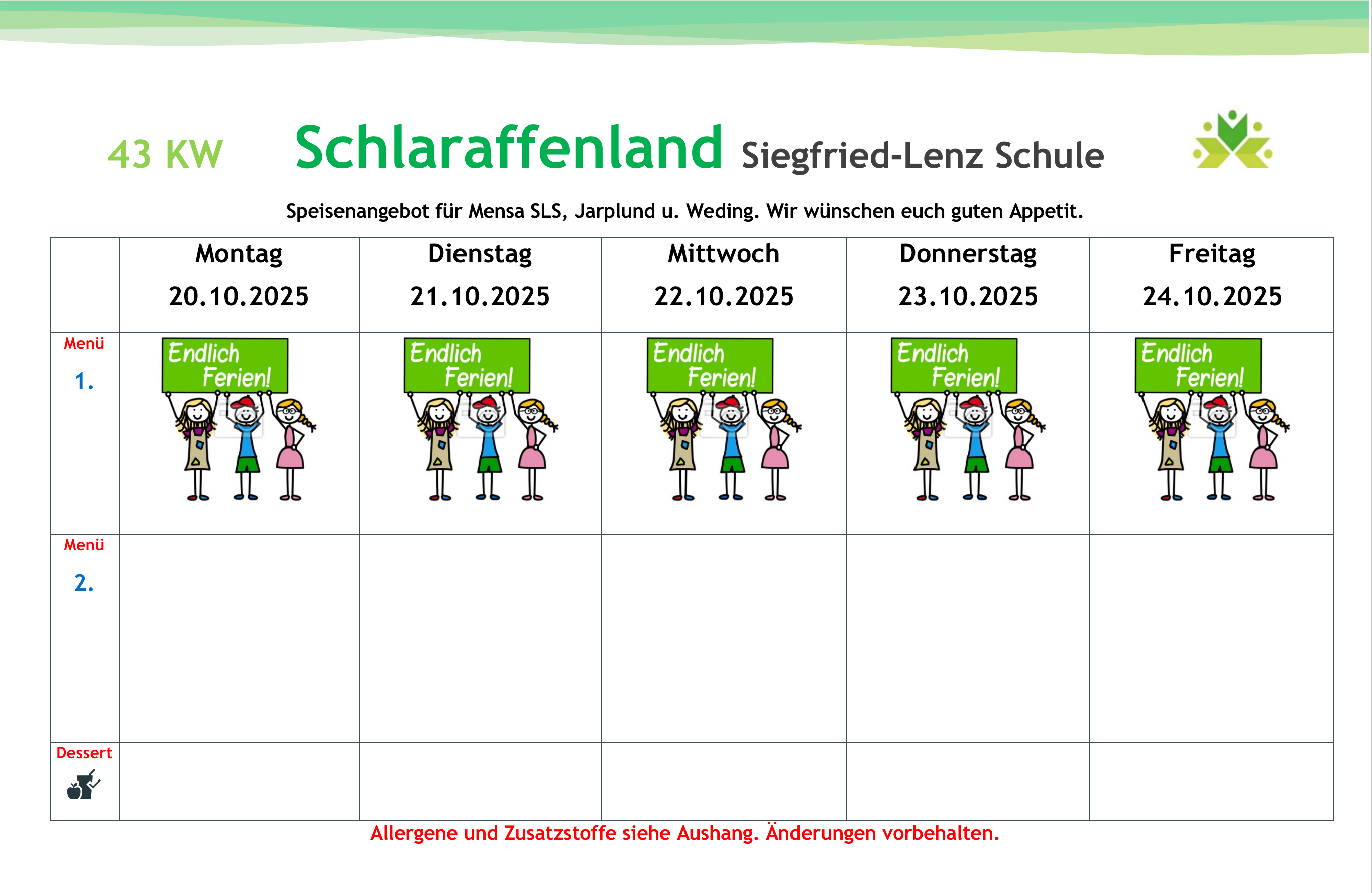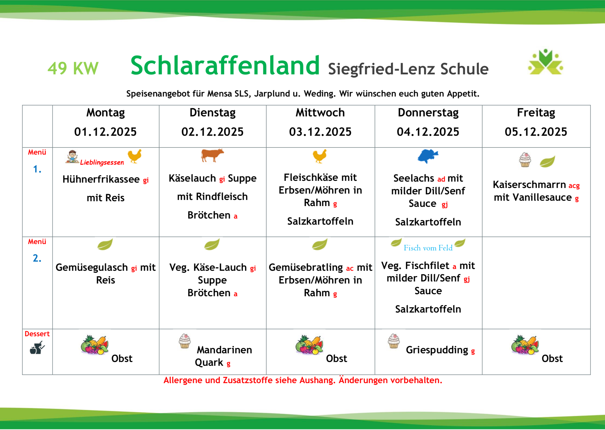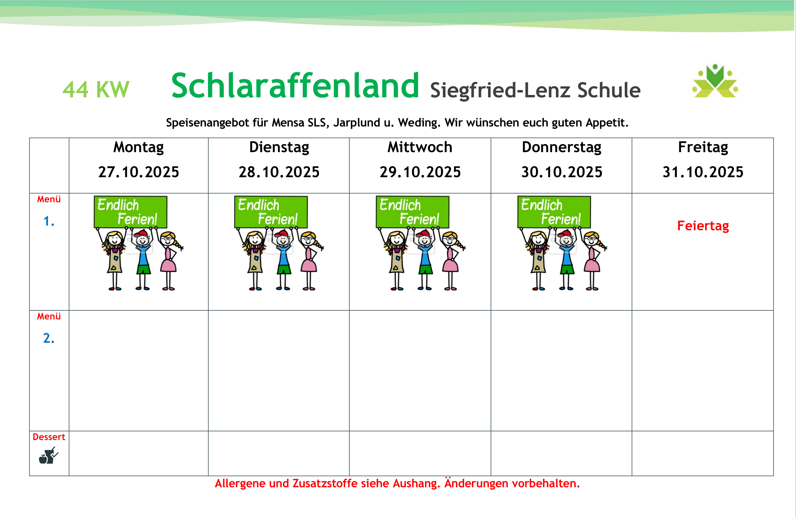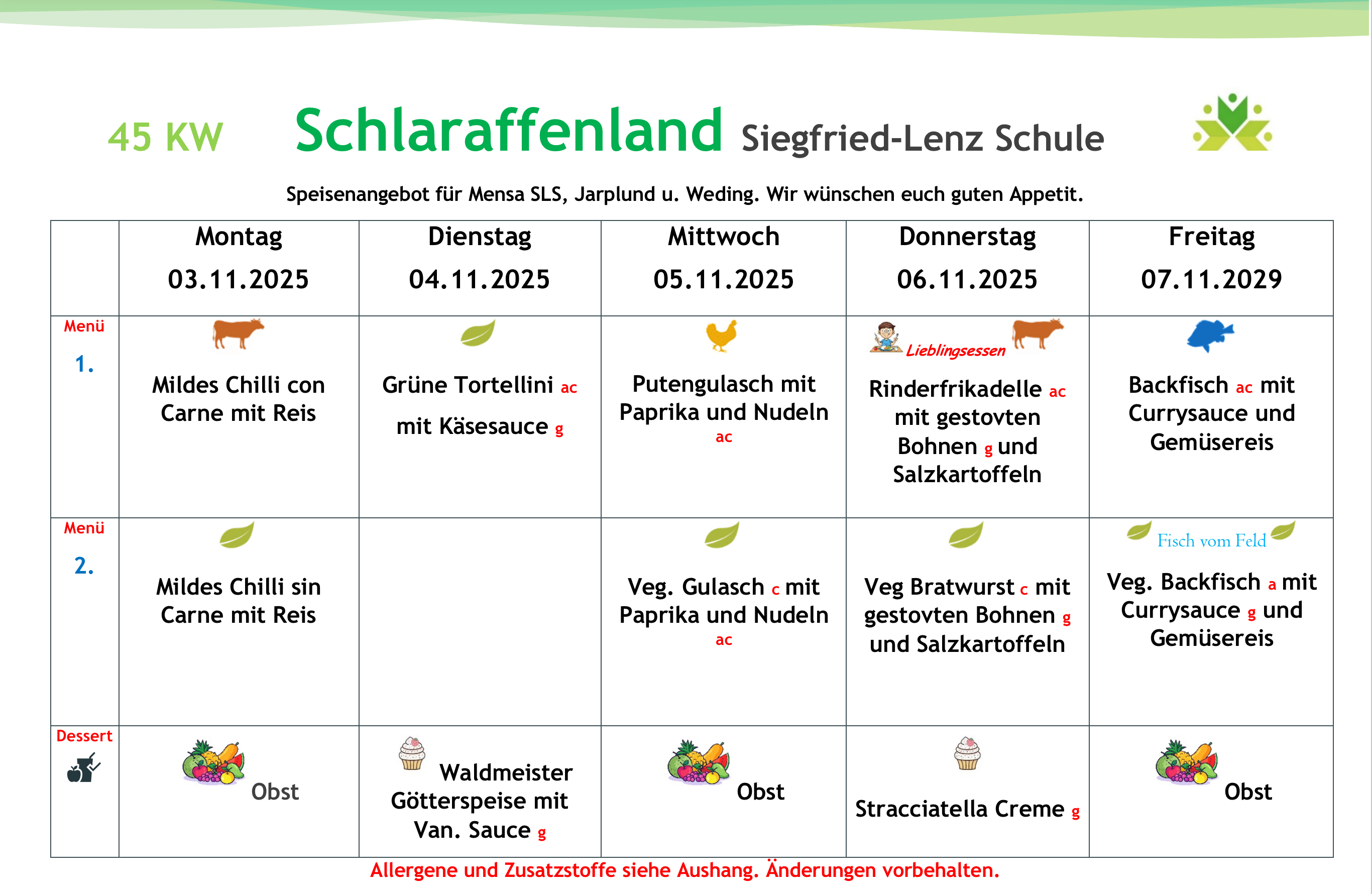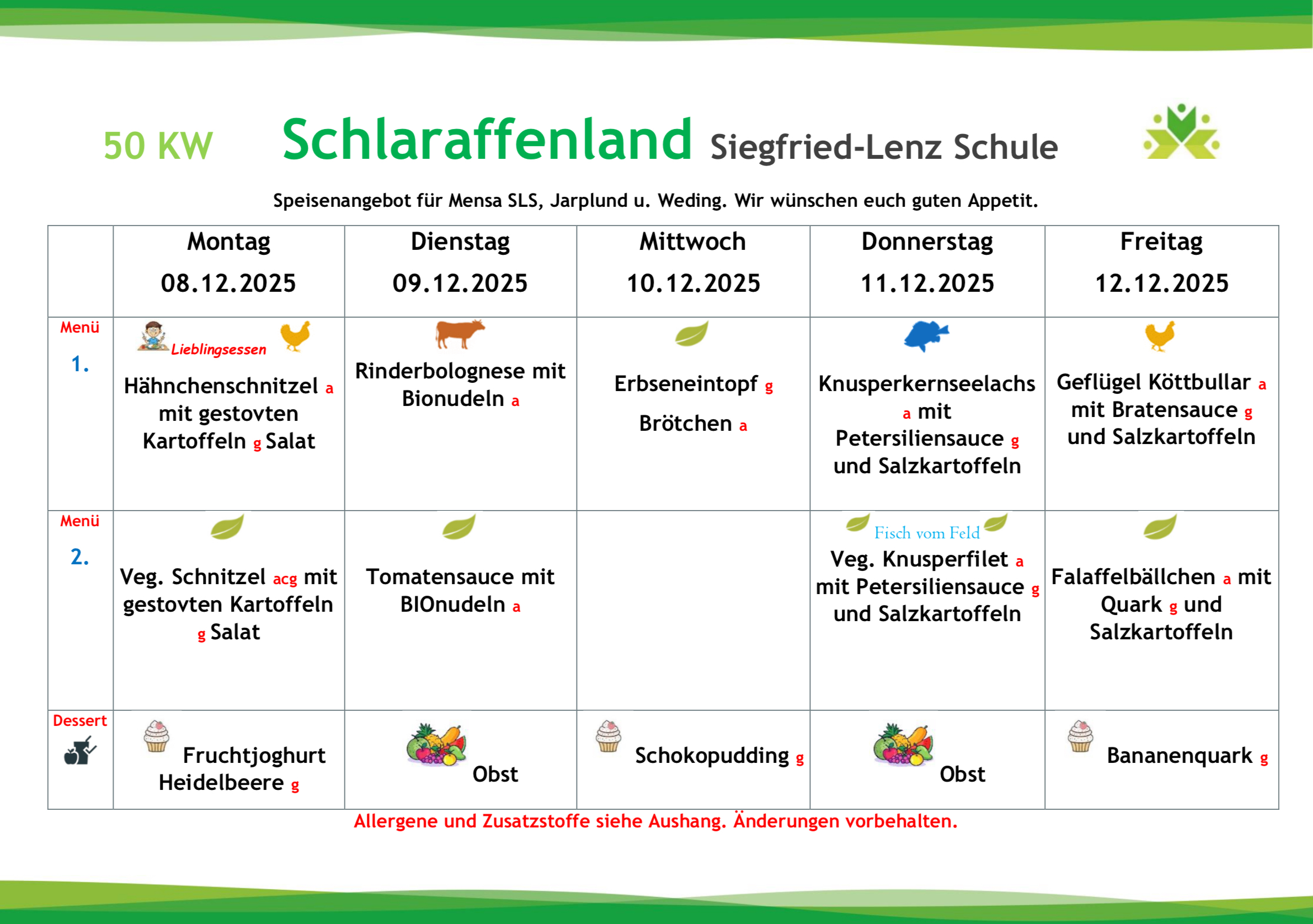 Die Gerichte werden zukünftig variabel auf die Wochentage verteilt, so dass beispielsweise der Fischtag nicht wie aktuell immer donnerstags, sondern auch an einem anderen Tag stattfinden wird. Jede zweite Woche wird an einem Tag ein sogenanntes „Lieblingsessen“ zubereitet (die Essenswünsche der Kinder und Jugendlichen werden berücksichtigt).