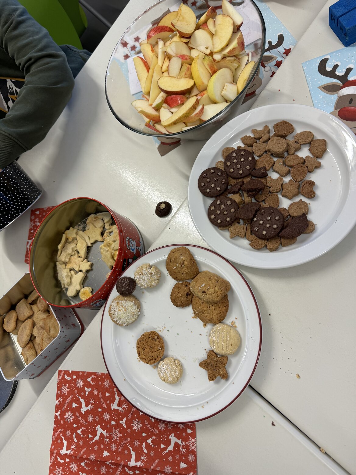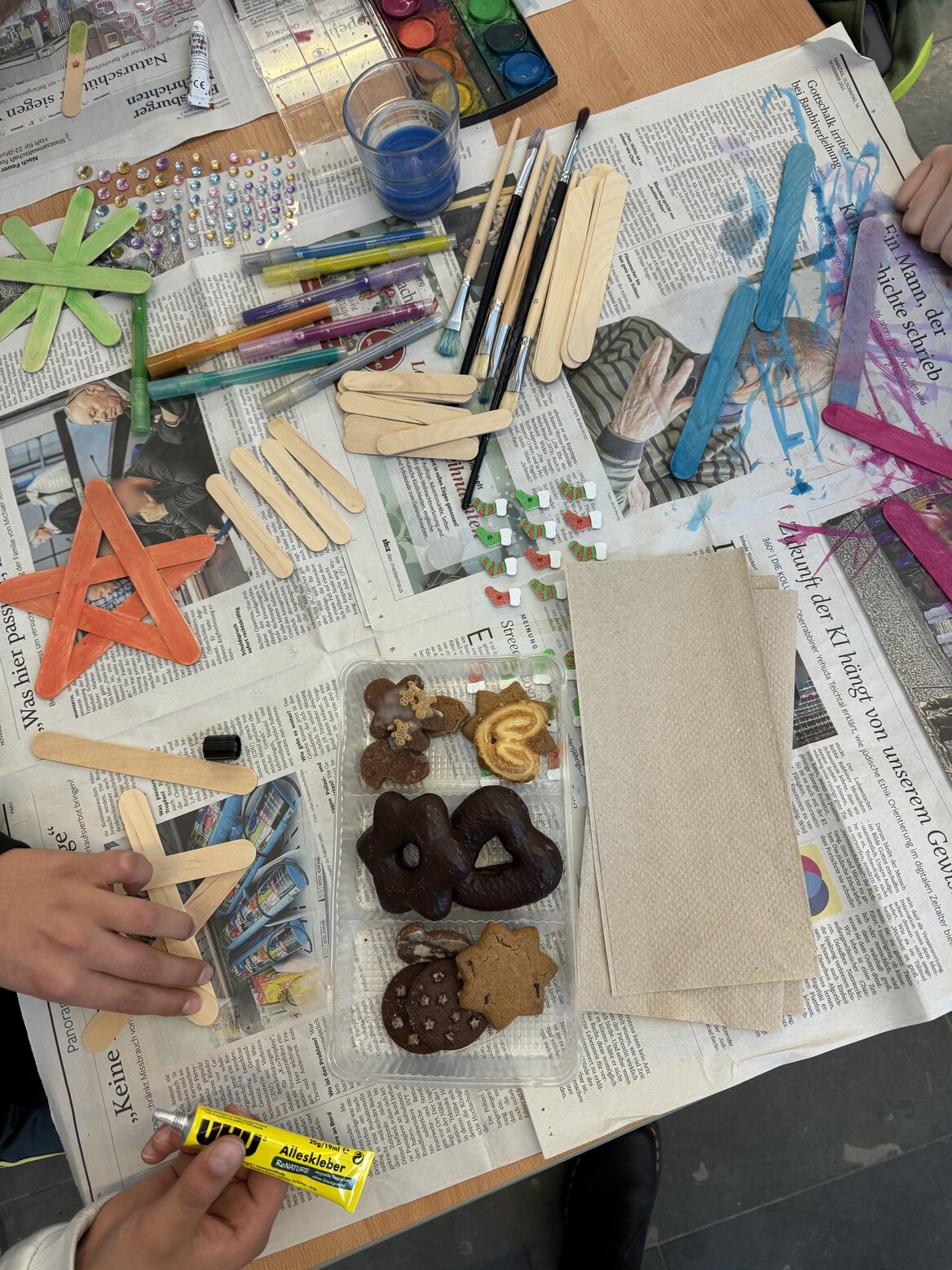 In diesem Jahr fand unser Weihnachtsbasteln für die Jahrgänge 5 bis 7 in ganz neuer Form statt. Statt eines festen Programms konnten die Schülerinnen und Schüler frei aus verschiedenen kreativen Aktionen wählen: Neben abwechslungsreichen Bastelangeboten lockten eine fröhliche Fotoaktion und stimmungsvolles Karaokesingen. Auch sportlich ging es zu – mehrere weihnachtliche Bewegungsangebote sorgten für viel Spaß und Energie. Wer es gemütlicher mochte, war im liebevoll eingerichteten Weihnachtscafé genau richtig und konnte dort bei leckeren Keksen eine Pause einlegen.