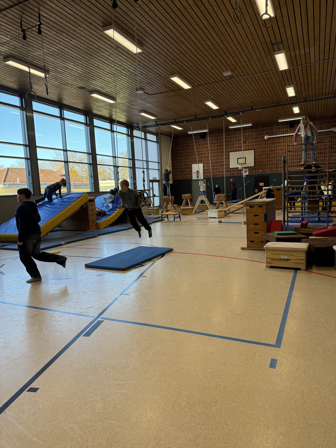 Orientierung - das war das Motto der Vorhabenwoche im fünften Jahrgang. Die Schülerinnen und Schüler hatten die Möglichkeit aus einem bunten Angebot aus sportlichen Aktivitäten zu wählen und verschiedene neue Sportarten kennenzulernen. Durch gemeinsame Kooperationen und die Unterstützung externer TrainerInnen konnten die Kinder ihre Ballfähigkeit beim Basketball, Tischtennis, Fußball, Handball und Floorball unter Beweis stellen. Außerdem wurden coole Erfahrungen beim Skaten und Waveboard fahren gesammelt. Zu fetten Beats wurde Zumba getanzt und erste Kicks beim Kampfsport trainiert. Für einige stand sogar Reiten auf dem Stundenplan.
