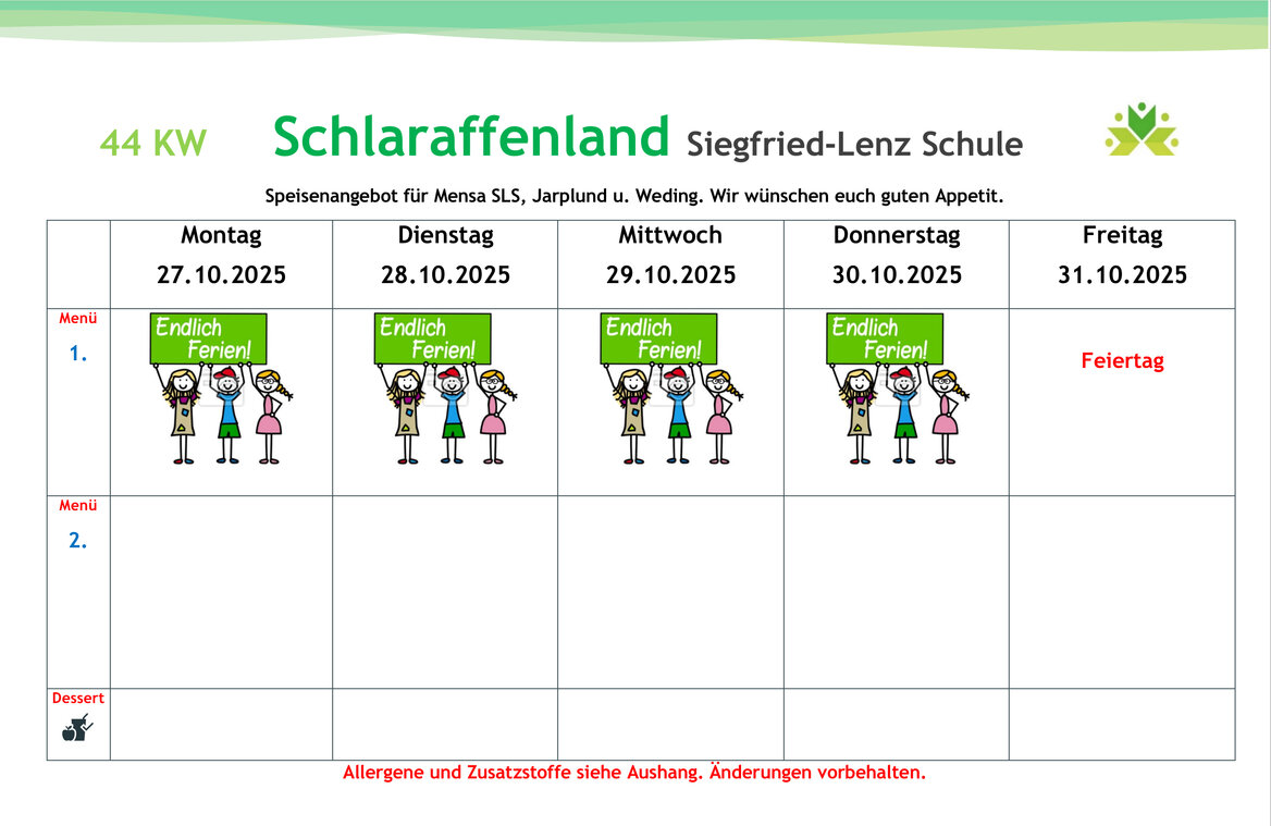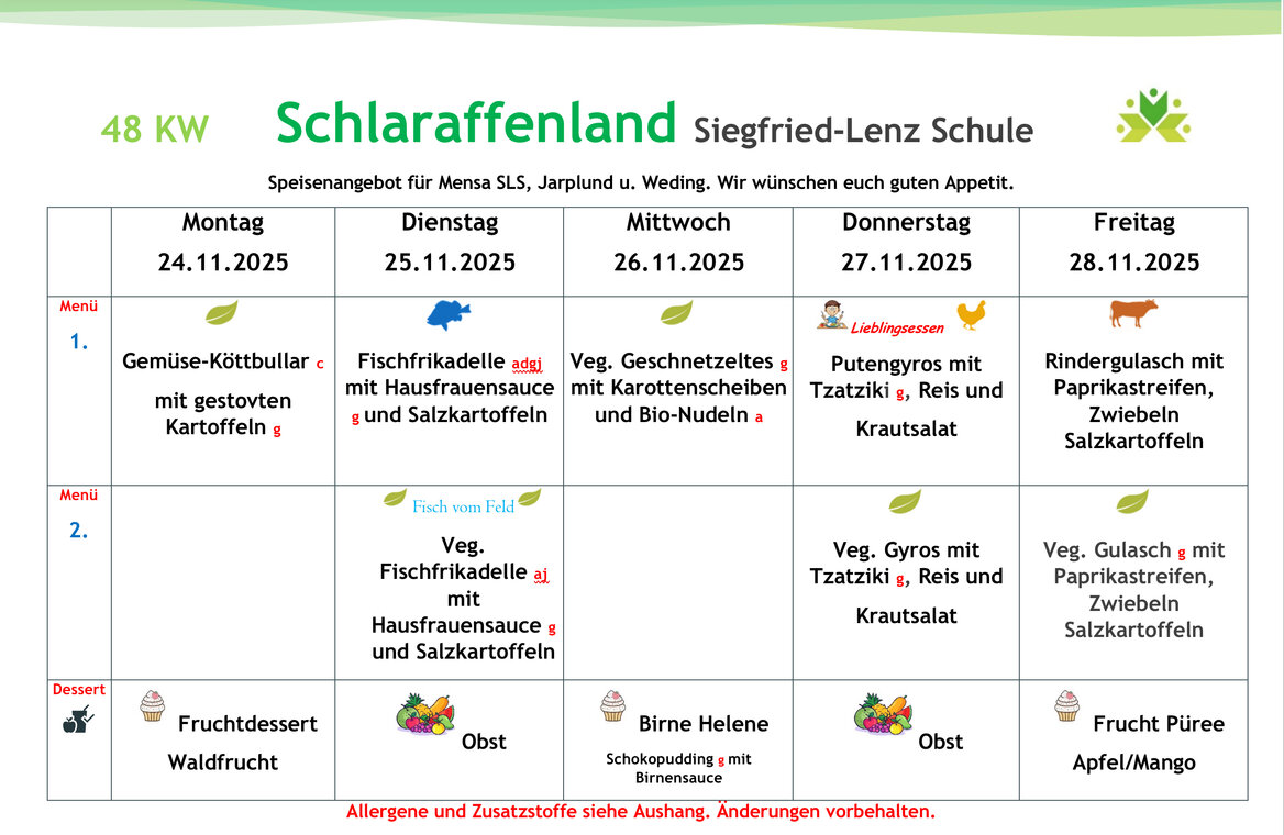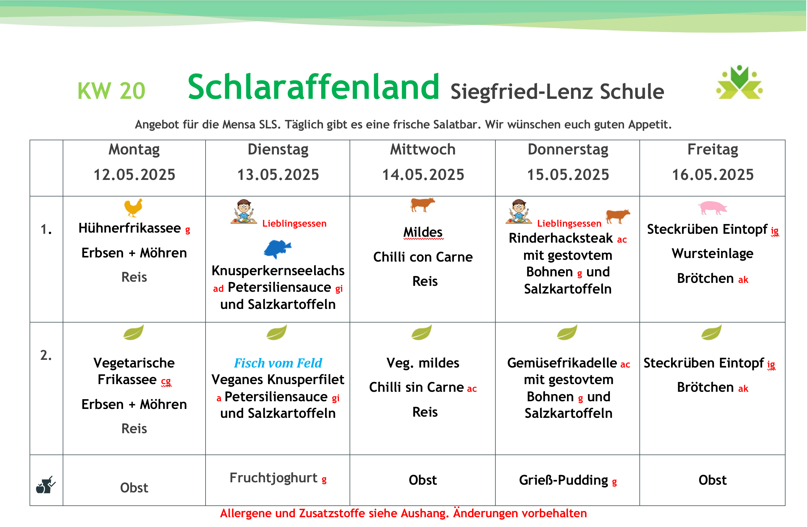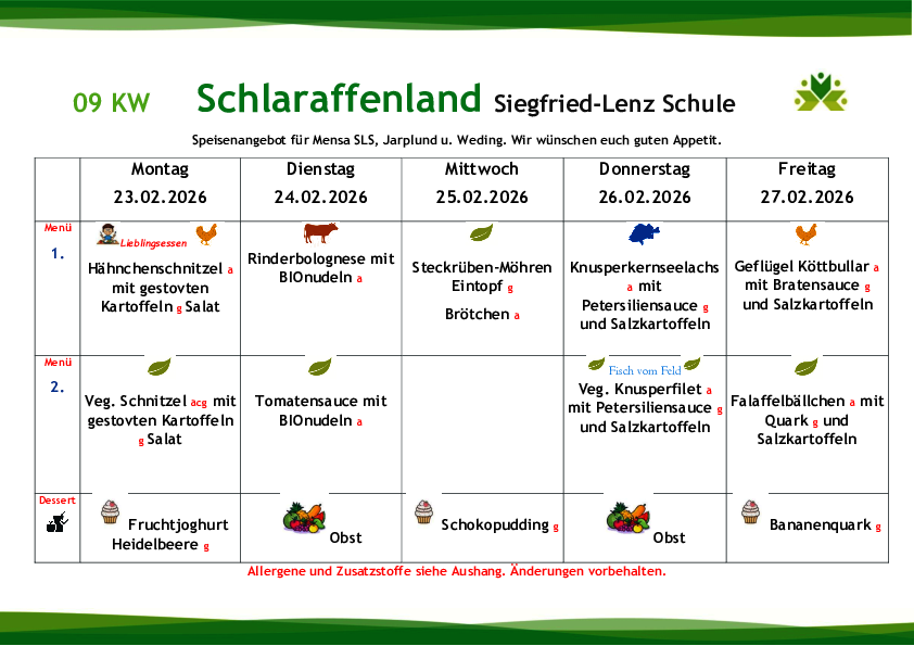 Die Gerichte werden zukünftig variabel auf die Wochentage verteilt, so dass beispielsweise der Fischtag nicht wie aktuell immer donnerstags, sondern auch an einem anderen Tag stattfinden wird. Jede zweite Woche wird an einem Tag ein sogenanntes „Lieblingsessen“ zubereitet (die Essenswünsche der Kinder und Jugendlichen werden berücksichtigt).