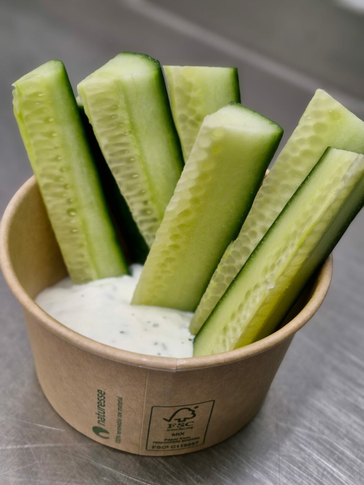 Nachtisch in Form von Joghurt oder Pudding wird im Wechsel zwei, bzw. drei Mal in der Woche angeboten. Zudem haben die Verpflegungsteilnehmer täglich freien Zugang zu einer Auswahl an frischem Obst- und Salat.