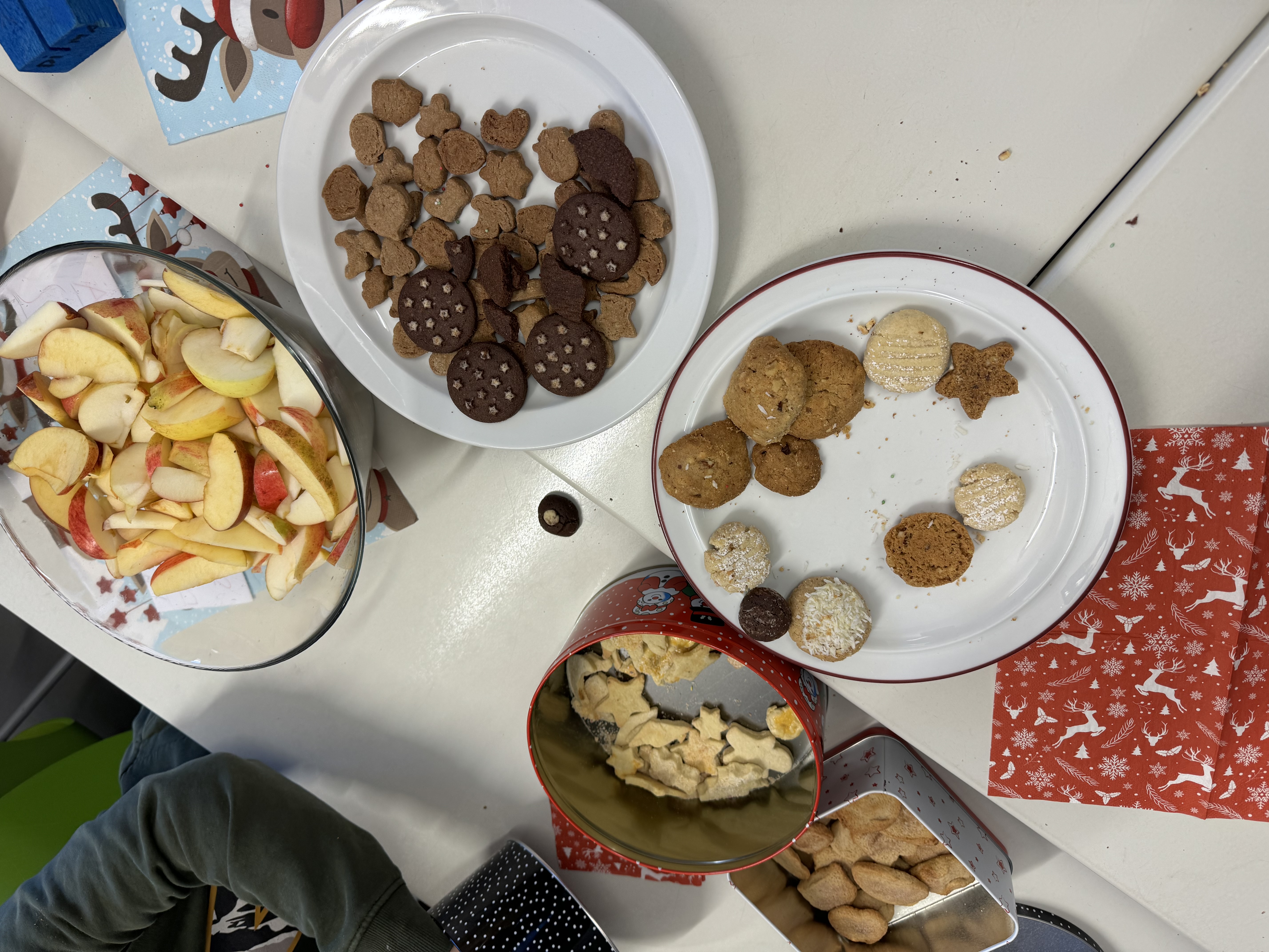 In diesem Jahr fand unser Weihnachtsbasteln für die Jahrgänge 5 bis 7 in ganz neuer Form statt. Statt eines festen Programms konnten die Schülerinnen und Schüler frei aus verschiedenen kreativen Aktionen wählen: Neben abwechslungsreichen Bastelangeboten lockten eine fröhliche Fotoaktion und stimmungsvolles Karaokesingen. Auch sportlich ging es zu – mehrere weihnachtliche Bewegungsangebote sorgten für viel Spaß und Energie. Wer es gemütlicher mochte, war im liebevoll eingerichteten Weihnachtscafé genau richtig und konnte dort bei leckeren Keksen eine Pause einlegen.